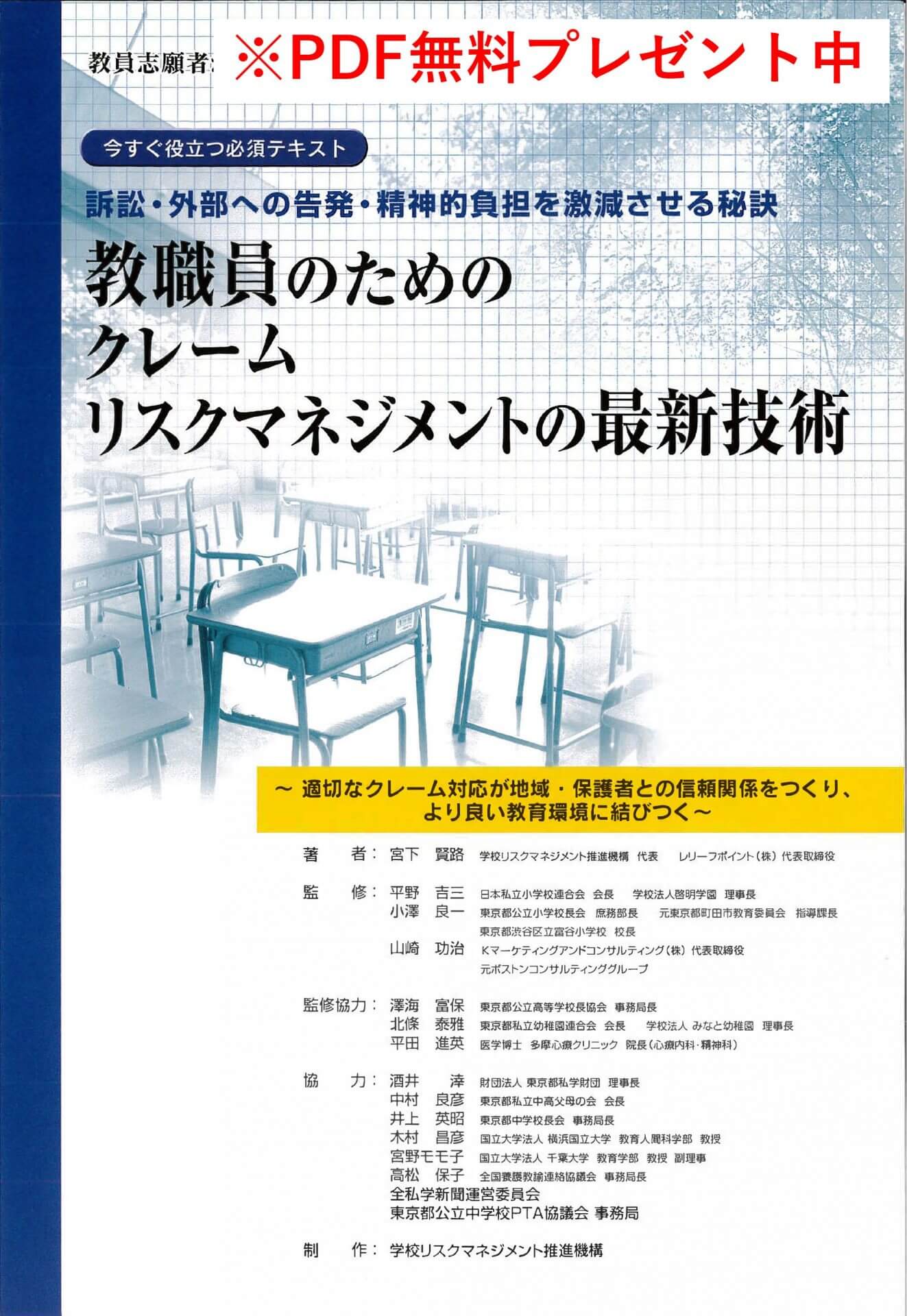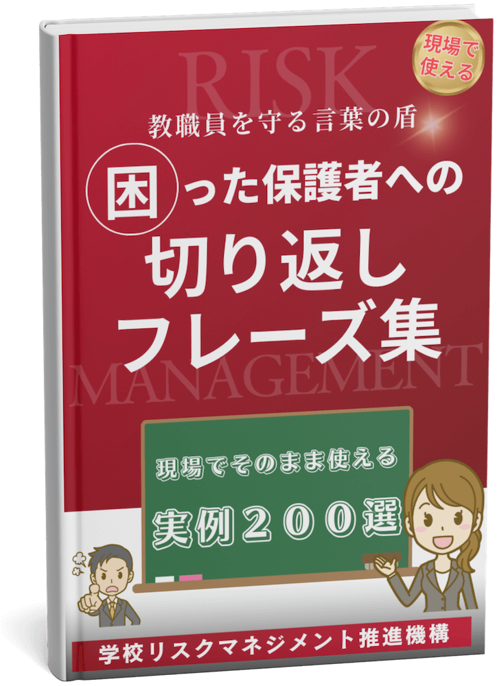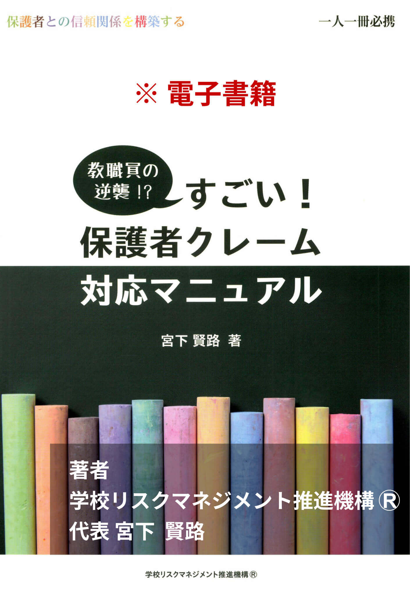 本書は学校リスクマネジメント推進機構が編集・刊行する有料の著作物です。無断での複製・転送・共有は著作権法違反に該当し、法的措置の対象となる場合があります。購入者が受領したデータを校内・外問わず他者に配布・共有することは禁止いたします。必ず個人単位で購入し、それぞれでご利用ください。